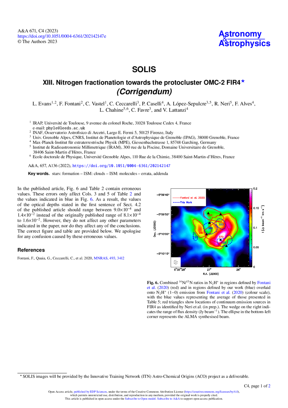 Key words: stars: formation / ISM: clouds / ISM: molecules / errata, addenda