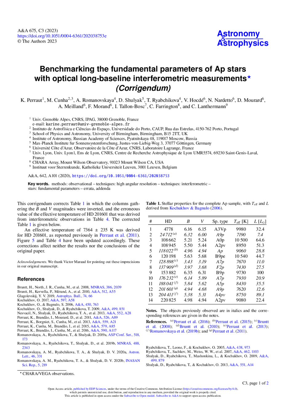 Key words: methods: observational / techniques: high angular resolution / techniques: interferometric / stars: fundamental parameters / errata, addenda