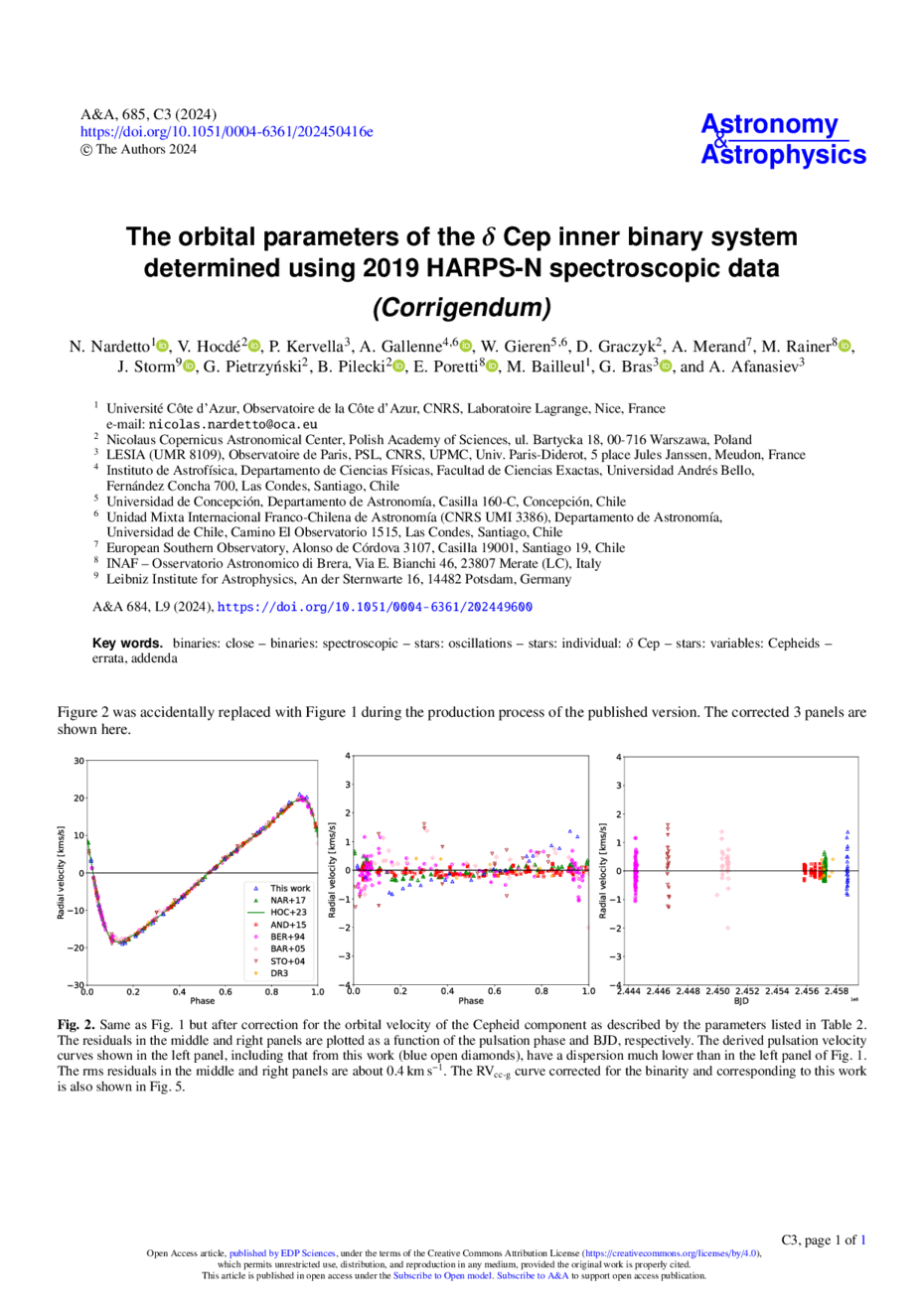 Key words: binaries: close / binaries: spectroscopic / stars: oscillations / stars: individual: δ Cep / stars: variables: Cepheids / errata / addenda