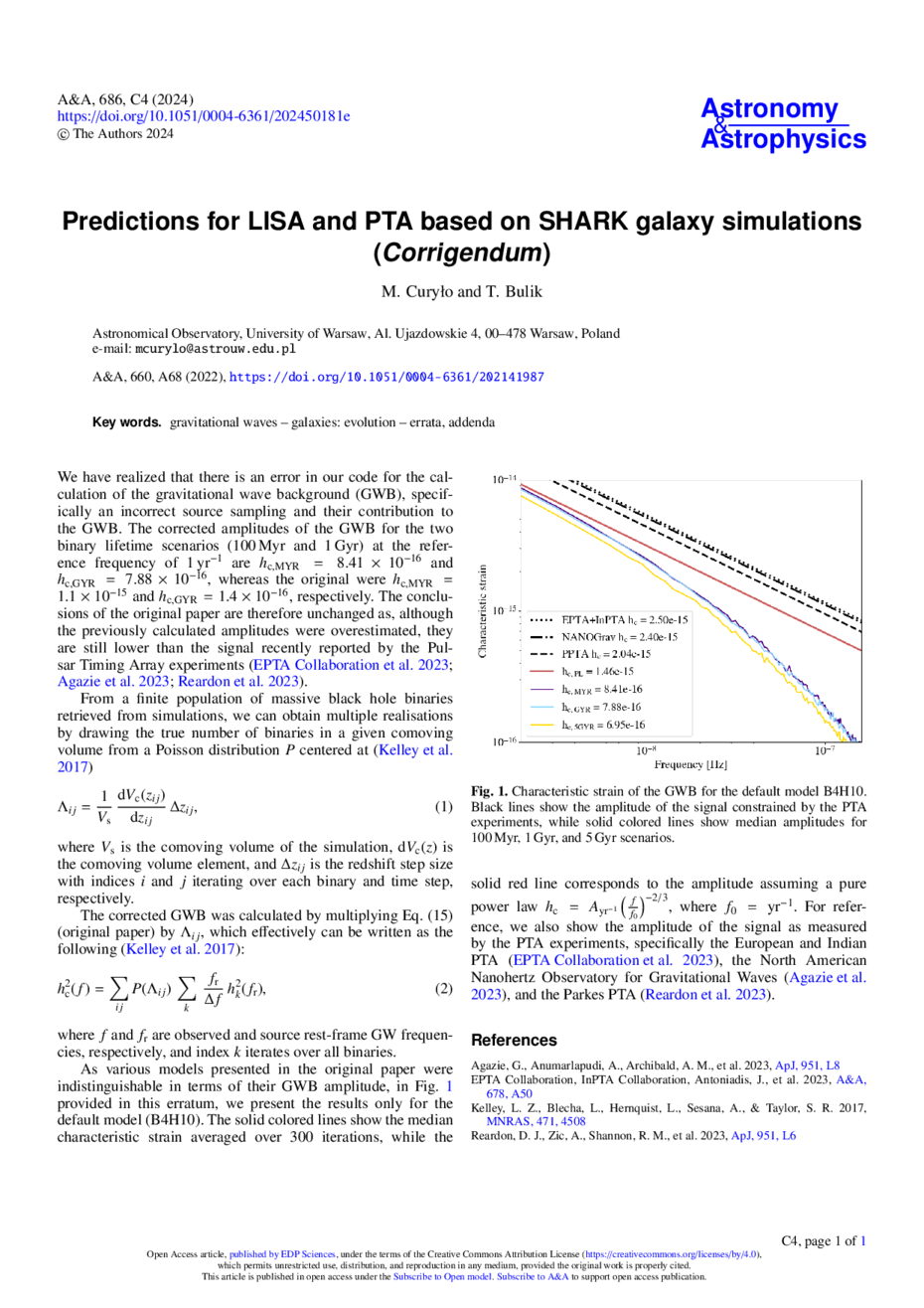 Key words: gravitational waves / galaxies: evolution / errata, addenda