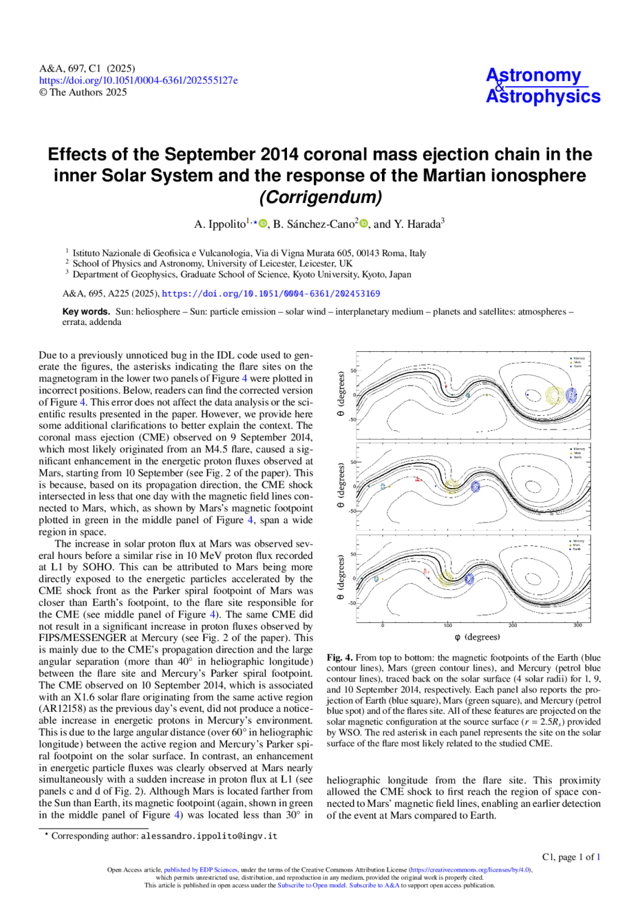 Key words: Sun: heliosphere / Sun: particle emission / solar wind / interplanetary medium / planets and satellites: atmospheres / errata, addenda