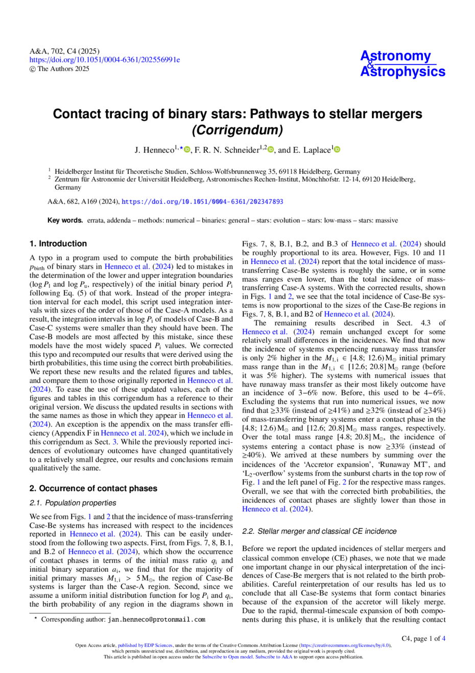 Key words: errata, addenda / methods: numerical / binaries: general / stars: evolution / stars: low-mass / stars: massive