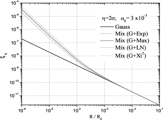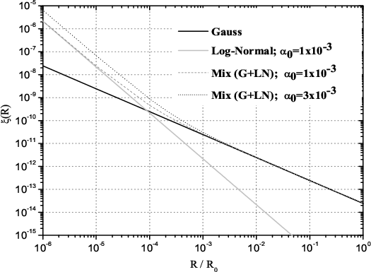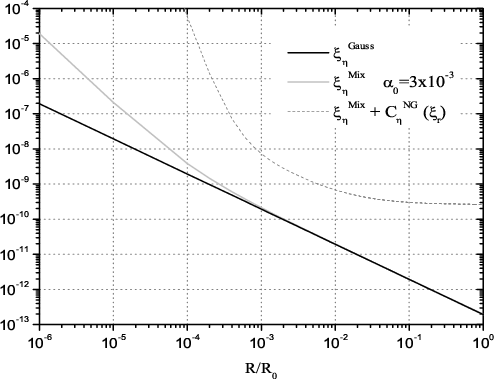 One very interesting result is summarized in Fig. 3. In order to follow the absolute behavior of the corrections terms in the nearly Gaussian field, we set the normalization value of the mean correlation function to one,