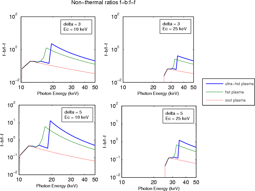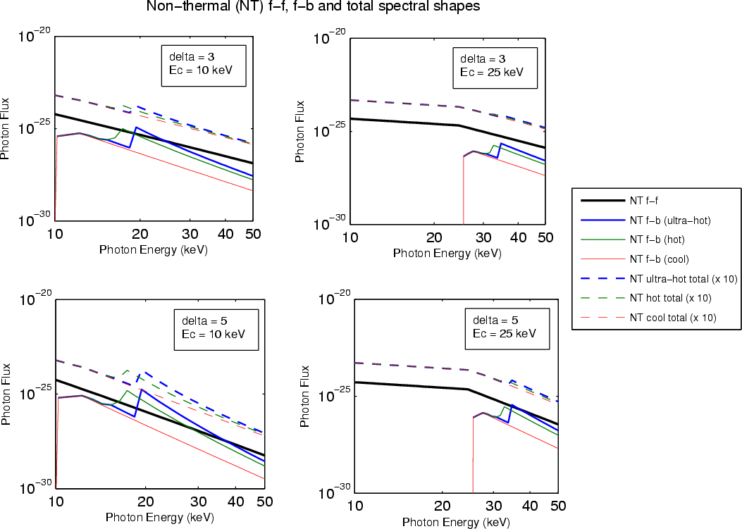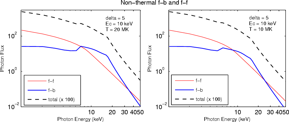 Conclusions. The f-b recombination from non-thermal electrons can be an important contributor to HXR spectra, so it should be included in spectral analyses, especially for hot sources. Accurate results will require use of better cross sections than ours and consideration of source ionisation structure.