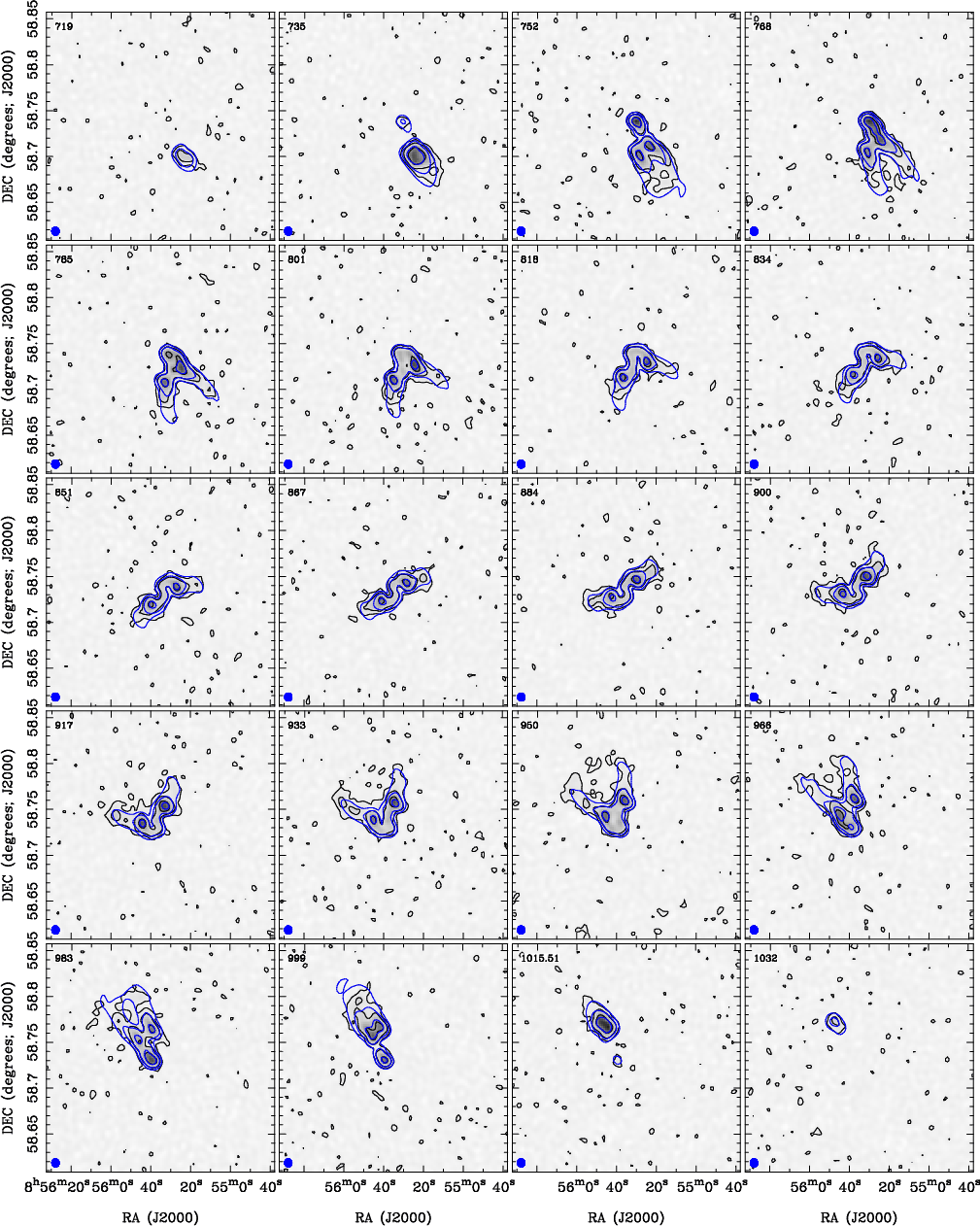 Selected images from the high-resolution data cube (channel width of