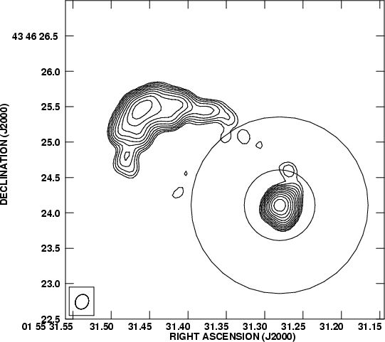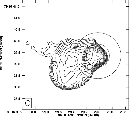 3C 441 north hot spot. 8.4 GHz VLA image from Kharb et al. (2008) with CLEAN restoring beam FWHM 0.23 |