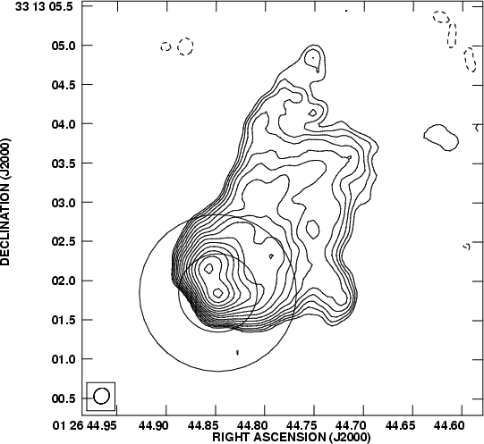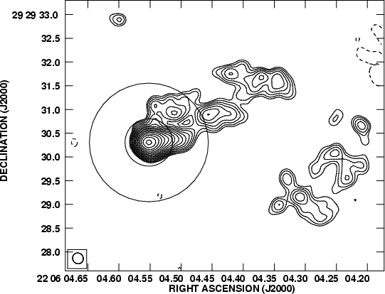 3C 172 north hot spot. 8.4 GHz VLA image from Kharb et al. (2008) with CLEAN restoring beam FWHM 0.26 |