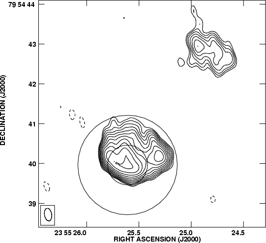 3C 114 north hot spot. 8.4 GHz VLA image from Kharb et al. (2008) with CLEAN restoring beam FWHM 0.22 |