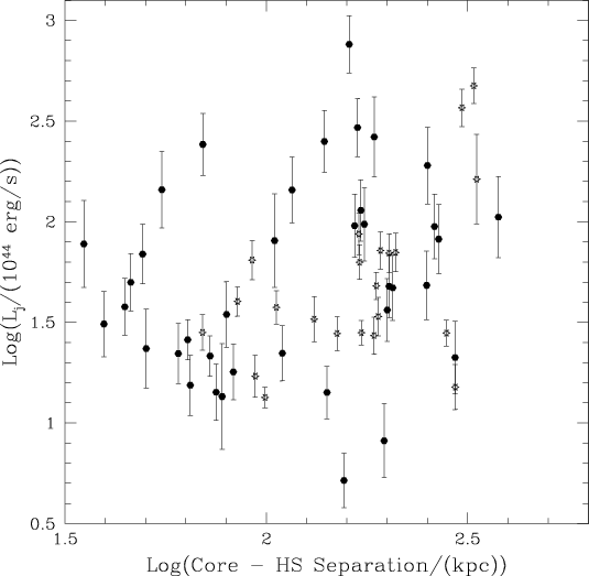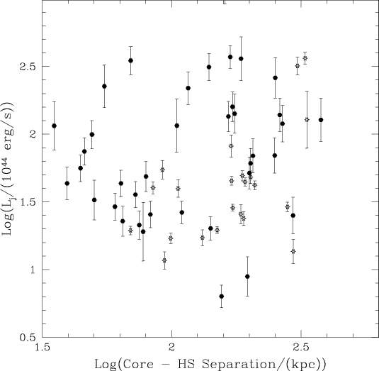 As an additional consistency check, we note that the hotspot spectral index is correlated with the lobe spectral index and is flatter than the lobe spectral index (Fig. 2 of Kharb et al. 2008), as expected if the spectra of the radiating electrons steepen after they leave the hot spot.