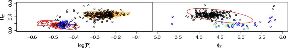 As opposed to selections made with extractor methods, we can have objects in our list having rather atypical light curve parameters for that particular class. These can be borderline cases, and in some cases, misidentifications. As was mentioned earlier, however, stronger limits can be imposed on the class probabilities and/or the Mahalanobis distance, to retain only the most typical candidates. In doing so, the samples will be purer, but, on the other hand, interesting border cases can be missed.