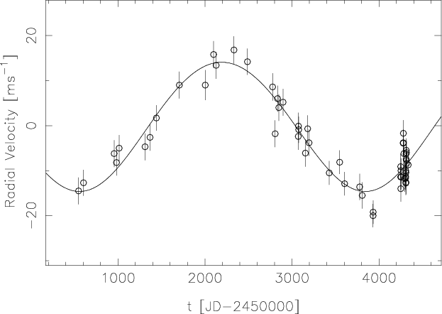 rad). This simulated data was used together with the real RV measurements published in W08 to find the limiting