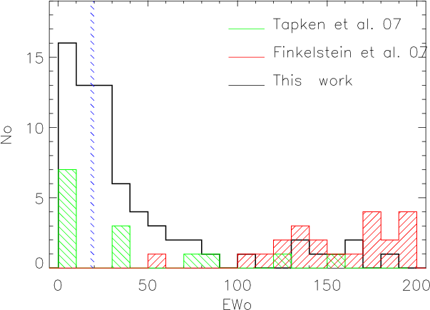 population (e.g. Finkelstein et al. 2007; Gawiser et al. 2007; Pentericci et al. 2007, hereafter P07). Because the Ly