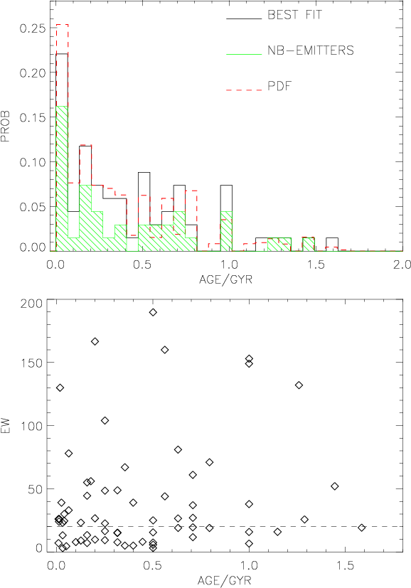 On the other hand, relatively old galaxies should be present also in NB selected samples.