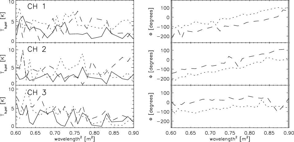 spectra of the neighbouring lines of sight were unwrapped by fitting a straight line to the polarization angles by hand. As a first guess for the slope of this line, we used the