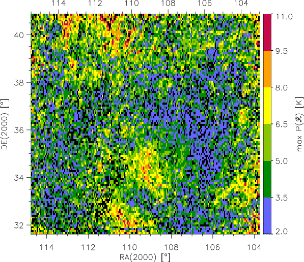 spectra are low (Fig. 6): 30% of the lines of sight in this area have a