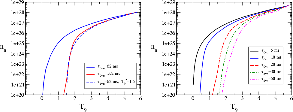 - We stress that comparing our expansion timescale with those given in other papers requires some caution. Otsuki et al. (2000), Sumiyoshi et al. (2000), and Terasawa et al. (2002) defined the expansion timescale as e-folding time at T = 0.5 MeV, which is compatible with our use. In contrast, Wanajo et al. (2001, 2002) defined it as the cooling time from T = 0.5 MeV to T = 0.2 MeV, which is about 10% smaller.