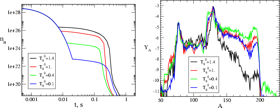 Supernovae and neutron star mergers have different advantages and weak points, but the main difference lies probably in the initial neutron-to-proton ratio, which is necessary for supporting a sufficiently high free neutron density during several hundreds of milliseconds. With respect to this parameter, all astrophysical scenarios can be separated into two distinct groups, in which nucleosynthesis can be carried out over short or long timescales (so-called short-time or long-time solutions, respectively), as introduced by Seeger et al. (1965). In nature, the r-process might be realized in both these types of sources and also other ones might contribute (see for example Cameron 2002; Arnould et al. 2007). It is only future modeling and observations that will be able clarify the multiplicity of the r-process models and types, as well as the contributions from different production sites to the r-process element abundances observed in the Solar System.