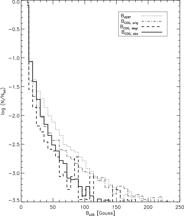 Results. The noise in the observed magnetograms from the centre-of-gravity method is