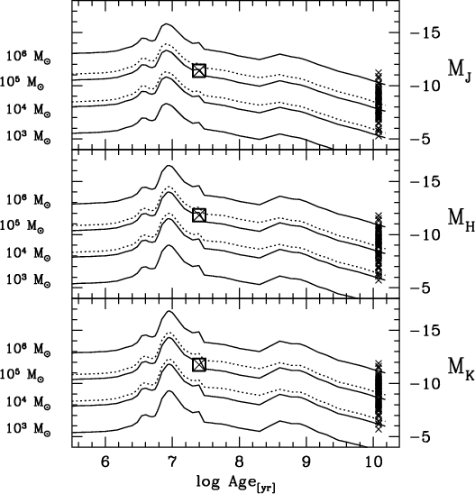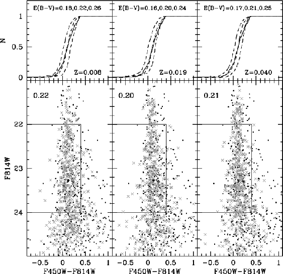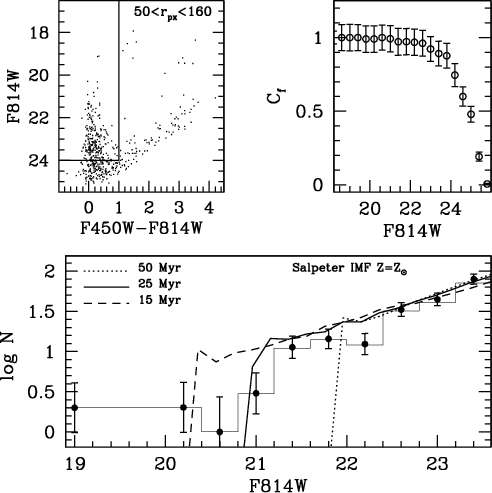 - We note that these values imply (V-I)0=0.41, adopting the reddening law by Dean et al. (1978), in excellent agreement with the prediction, used above, of (V-I)0 from Maraston's (2005) model for a solar metallicity SSP of age 25 Myr.