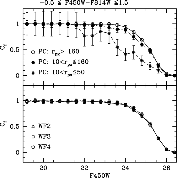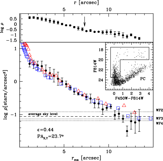 - Except for the very crowded region at the center of the cluster. For 10 px < r