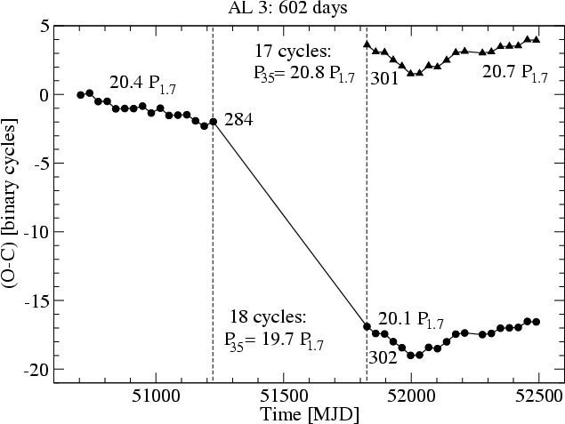 Fig. 3 (upper panel) shows strong and frequent period variations on