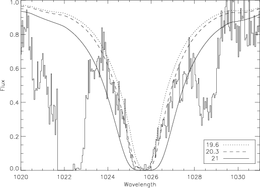 km s-1. Its value is mostly constrained by lines near saturation such as the O I 988.77 Å line (Table 2). The quoted uncertainty on the b-value does not include possible systematic errors on the LSF width. The corresponding FWHM
