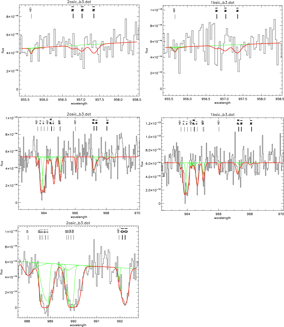 Data were processed by the CalFUSE pipeline (version 3.2.1). We aligned the individual exposures on the wavelength grid and co-added them to obtain one spectrum per observing channel.