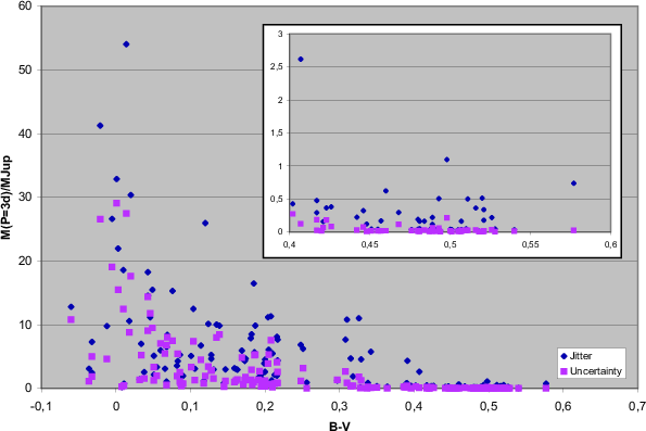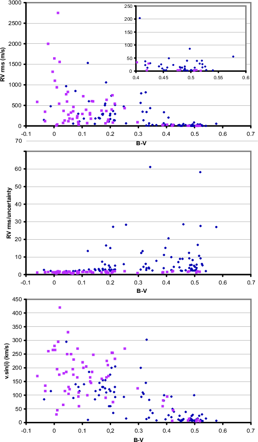 precision level. Stars with earlier spectral type (B-V