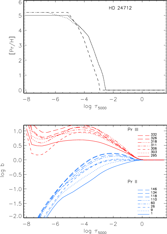 Similar abundance profiles found empirically for Nd (Paper I) and Pr in the atmosphere of HD 24 712 point to some common physical mechanisms producing accumulation of these two elements in the uppermost atmospheric layers. The main mechanism can be radiatively driven diffusion. The theoretical diffusion calculations of LeBlanc & Monin (2004) for Cr and Fe and of Alecian & Stift (2007) for Mg, Si, Ca, Ti, and Fe predict the existence of abundance jumps of several orders of magnitude in stable stellar atmospheres with effective temperatures that are characteristic of Ap stars. Similar abundance profiles are derived empirically for these elements in the atmospheres of roAp stars (Ryabchikova 2008). In contrast to REEs, Mg to Fe are accumulated in the lower atmosphere. Due to difficulties with the atomic data, no diffusion calculations were performed for the REEs to be able to confirm the validity of the empirical distributions, although the situation is improving and we hope to see the first REE diffusion calculations in the future.