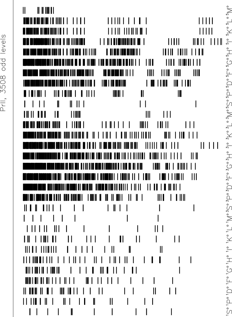 10.04 eV, in total 6539 levels of Pr II, were used to construct the model atom. They are shown in Figs. 1 and 2 for the even and odd levels, respectively.