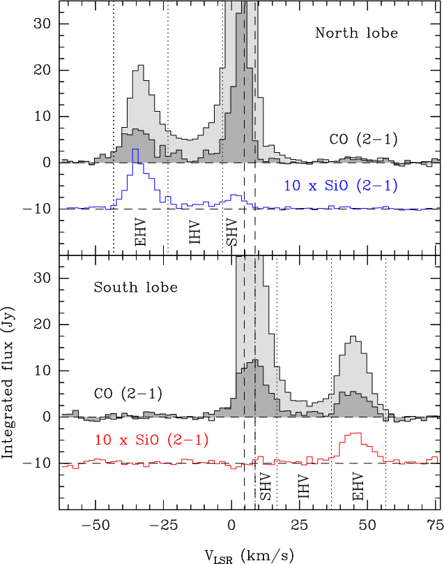 flux from the SiO(2-1) emission. For CO(2-1), the