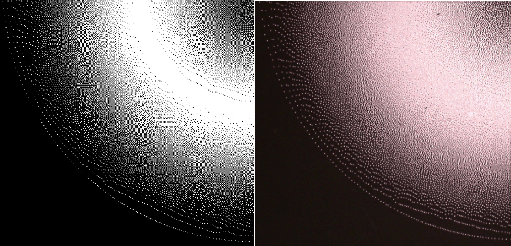 Right: resulting microdots pattern using algorithm discussed in