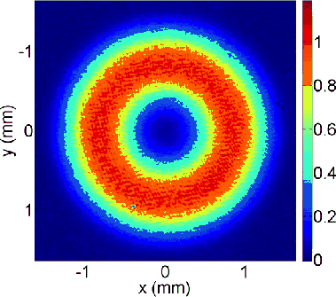 transmission values) and was extrapolated by a Gaussian function in its outer part (from 1.5 mm to 3 mm in radius, i.e. above the apodizer function radius) to reduce the transmission slowly to zero.
