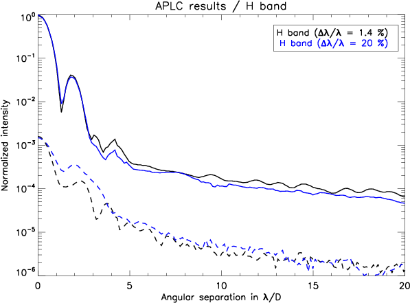 Despite the discrepancy discussed above, these first results of APLC using a microdot apodizer (raw contrast profiles) exceed already the SPHERE requirements (Boccaletti et al. 2008).