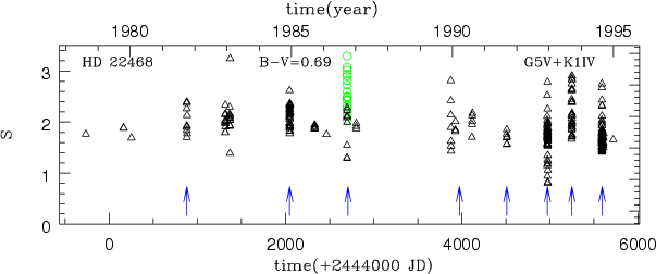 Results. For HD 22 468 (V711 Tau, HR 1099), we find a possible chromospheric cycle with a period of