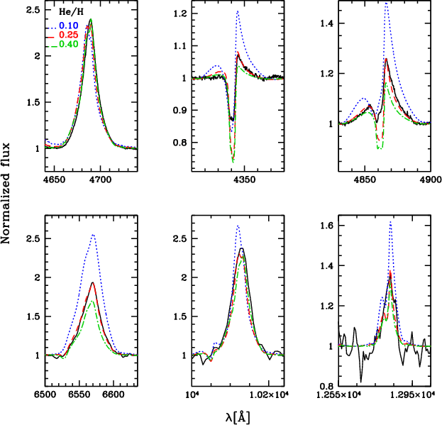 - Note that our best fit model in Fig. A.1 has a slightly lower mass loss rate (0.1 dex) than the best fit model of Fig. 2 in order to best match both optical/UV and near-infrared lines. In Fig. 2,