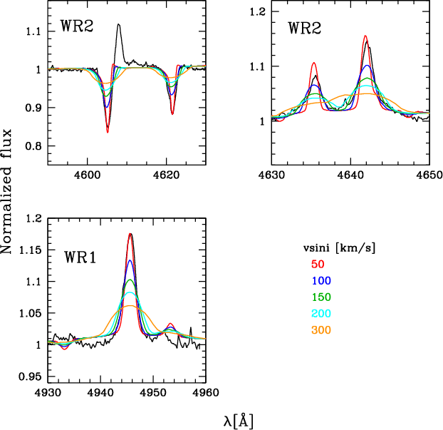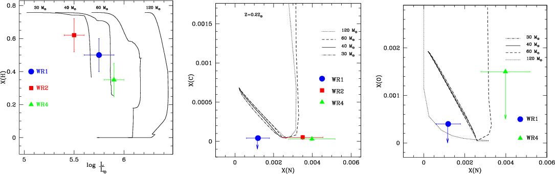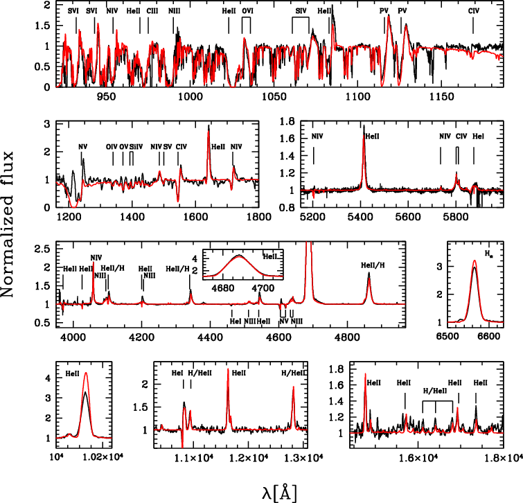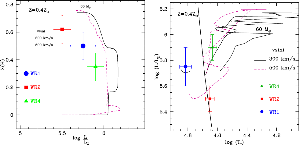 Table 2: Parameters of our best fit models. Uncertainties are: 3 kK (7 kK for SMC-WR1) on temperatures, 0.1 dex on luminosities (0.15 for SMC-WR1), 0.2 dex on