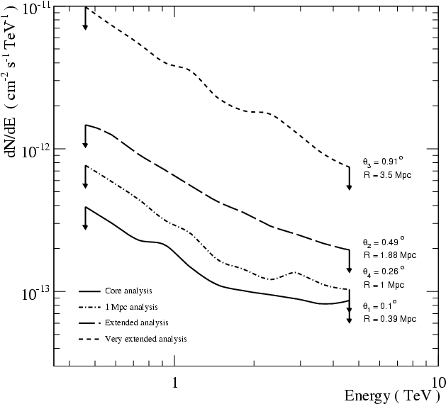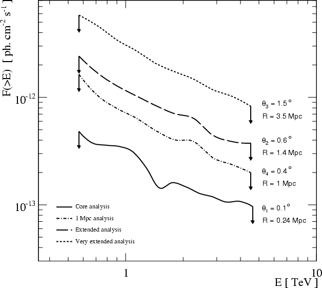 G (e.g. Atoyan & Völk 2000). Consequently VHE electrons do not accumulate in clusters and it is expected that the electron spectrum will cut off at an energy that is below the VHE regime outside the acceleration sites. Hence leptonic VHE gamma-ray production is likely less relevant in galaxy clusters (Atoyan & Völk 2000).