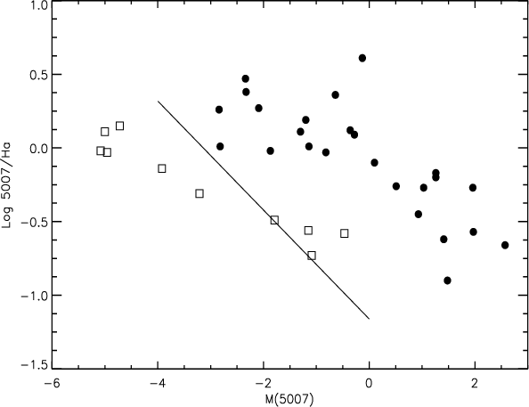 width for flux calibration. In this paper we use the spectroscopic data to confirm the classification of some objects and to calibrate the instrumental [O III] 5007 and