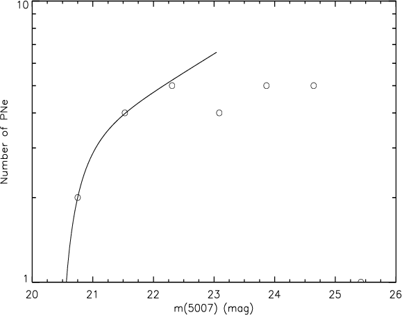 - Our best fit for the 3 brightest magnitudes of the observed PNLF allows us to determine a distance modulus