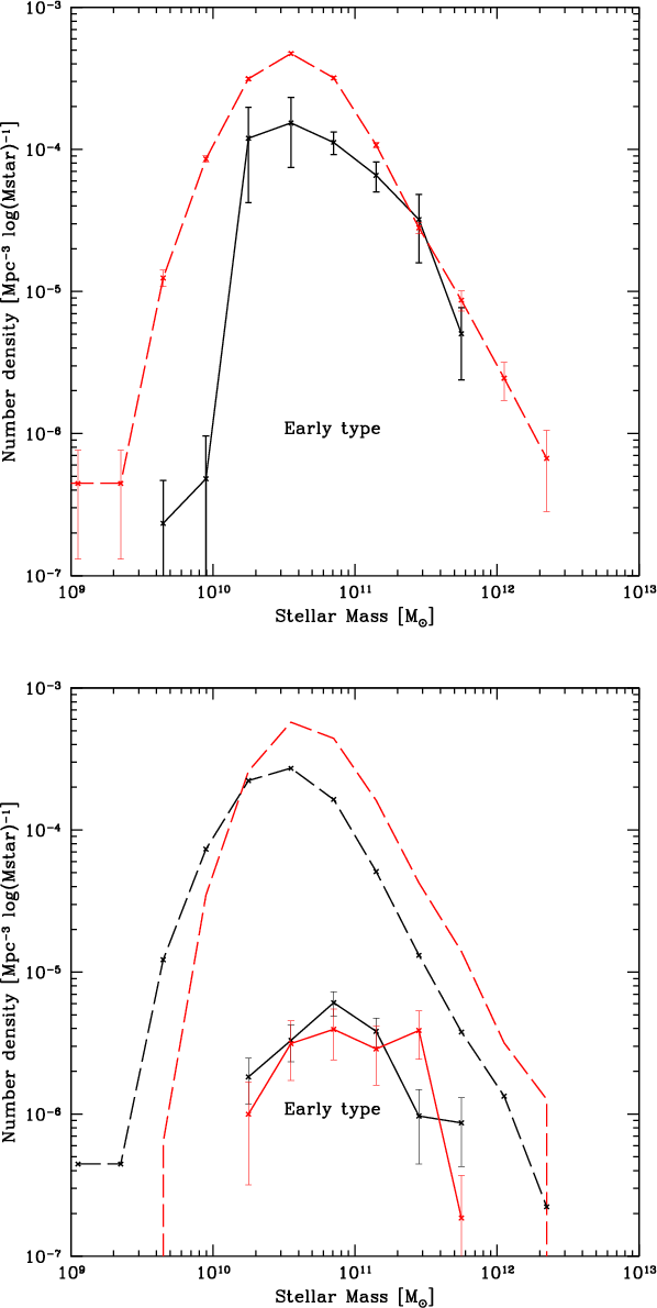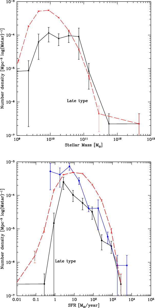 The relative fractions of the various populations contributing to the sub-mJy radio counts (AGN, starburst, late, and early type galaxies) are still a matter of debate, with different surveys providing different results (Smolcic et al. 2008, and references therein).