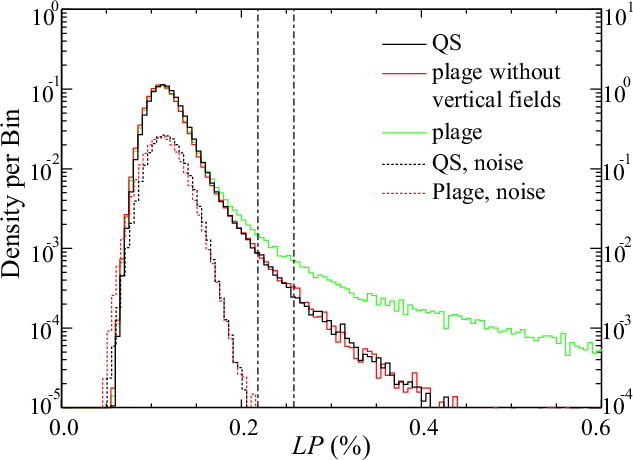 Figure 3 shows histograms of LP for the plage, as well as the quiet Sun region.
