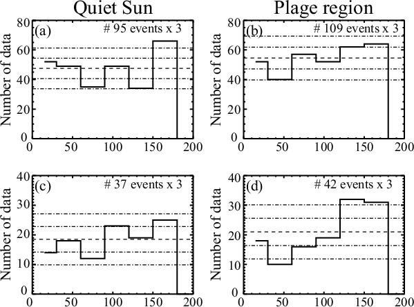 we detected 37 events in the quiet Sun and 42 events in the plage region. We show the azimuth angles of the magnetic vector for these THMFs in Figs. 4c and d. In the plage region we find a broad peak between 120