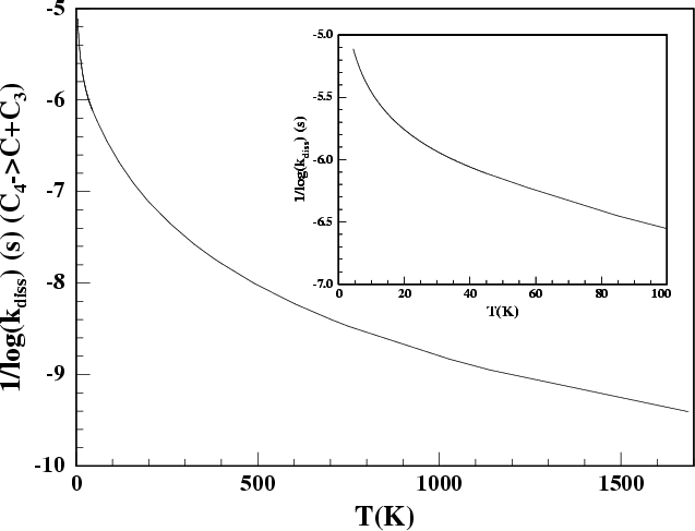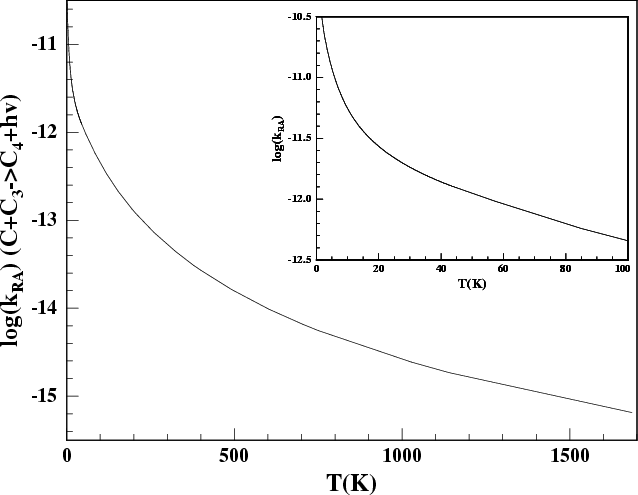 Figure 3: Radiative association rate coefficient for C4 production as a function of temperature. |