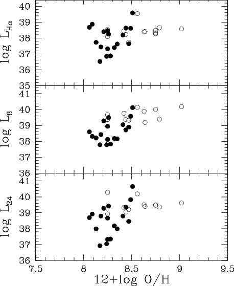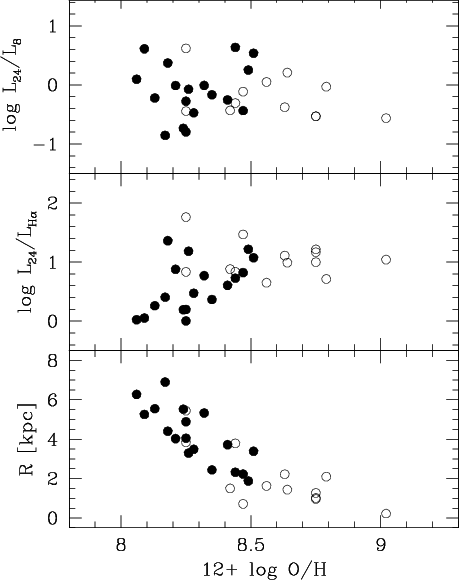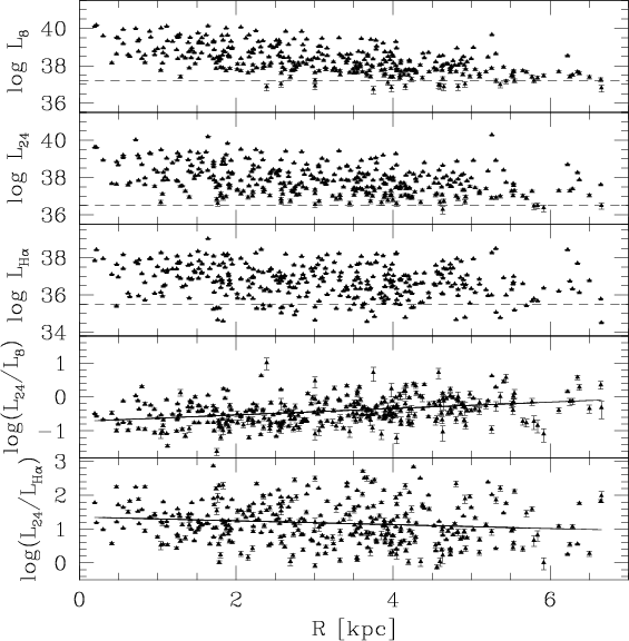 counterparts and show that the IR luminosities have a weak dependence on galactocentric radius. The IR and H