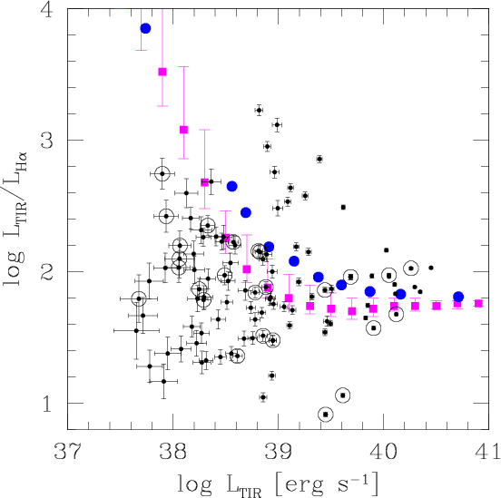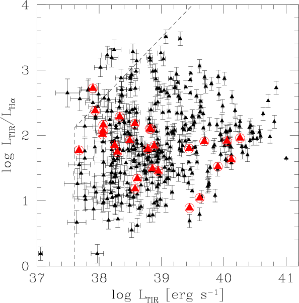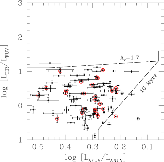-to-infrared flux ratio, which limits