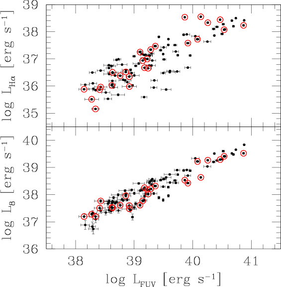 luminosities are not correlated. Complementing the infrared photometry with GALEX-UV data, we estimate the bolometric luminosities to investigate how they are related to the H