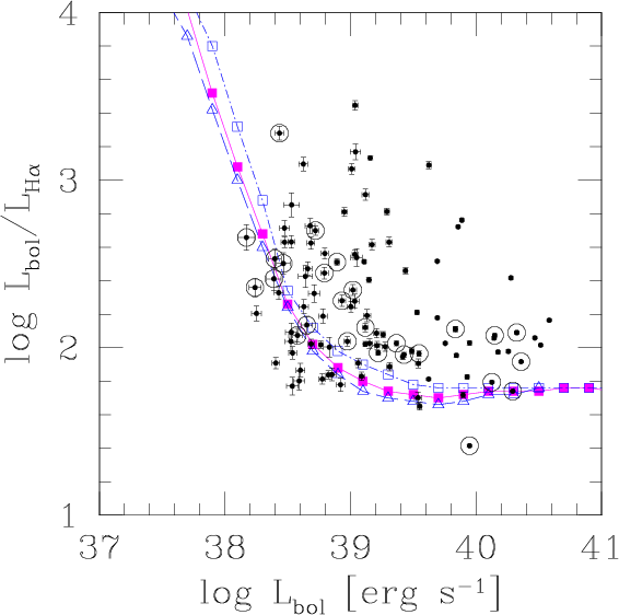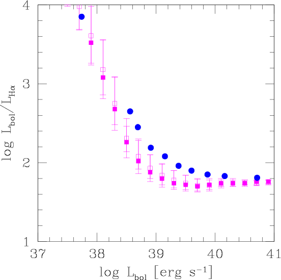 luminosities. We simulate a theoretical diagram for the expected bolometric-to-H