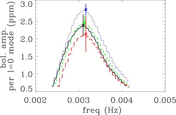 amplitude chosen here to be the bolometric amplitude for radial modes. In Sect. 4, we show that the results obtained with the different data sets considered here are consistent to a