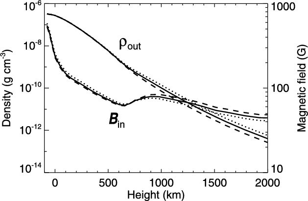 parameters with height above the photosphere appears to be